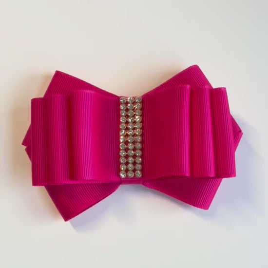 An elegant bow with a shiny detail at the center. A timeless piece for special events and celebrations.